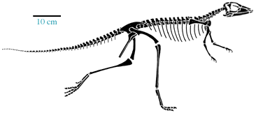 reconstruction of a Lesothosaurus who is a member of the herbivorous clade of dinosaurs, the Ornithischia. |