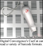 Because the CueCat is so cheap it should put Barcode scanning into anyone's reach for their inventory and storage. The labels can also be printed off the serial port printer if it is available. All this will be covered in detail in the book on Vault-OS so anyone can install and configure a CueCat.