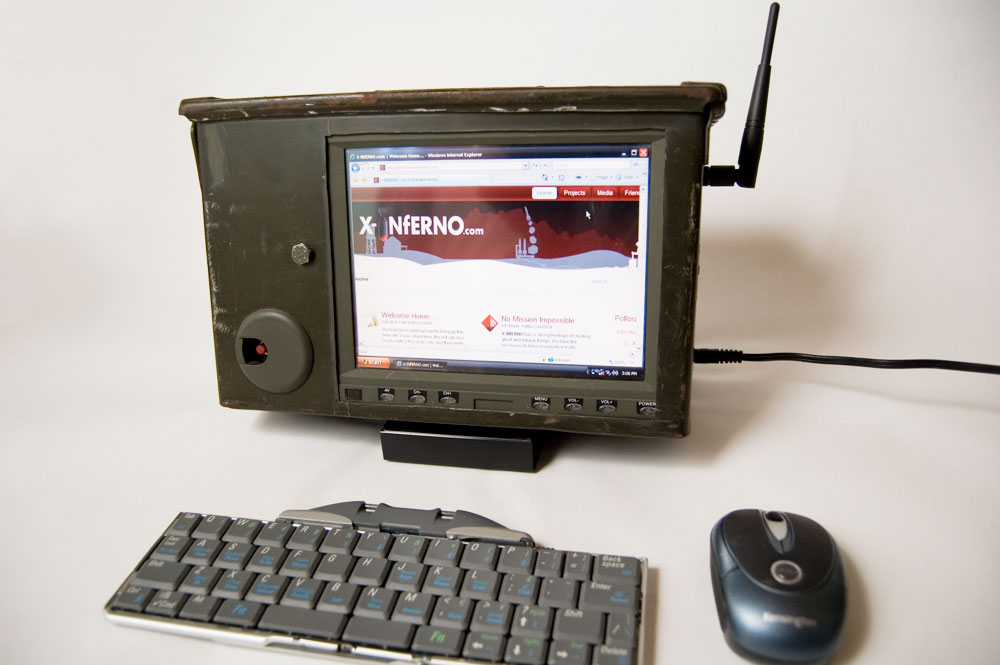 If you want to spend a lot more money you can get a pretty good looking case in a similar style here as a custom housing. I'd recommend the genuine surplus ammo can because it is tougher and comes with a rubber seal in the lid. I've picked these up for $10 or thereabouts. Mounting the screen in the face is a good idea if you mount it behind a piece of plexiglass on the inside.