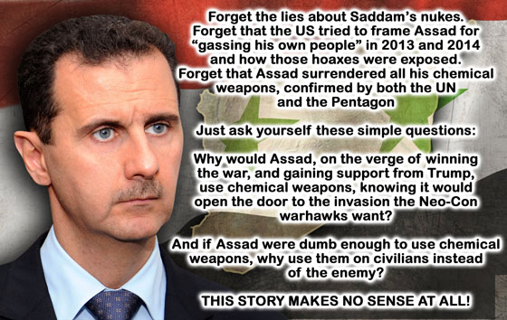 World wars are always preceded by outrageous false flags and atrocity hoaxes. World War III will be no different. Why would Assad use chemical weapons when he was in the middle of a cease fire and promised stability for his region? Never happened.